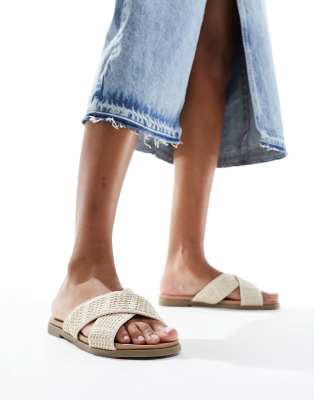 New Look cross front flat slip on sandals in off white