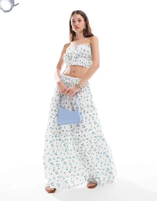 New Look ditsy rose skirt set in white
