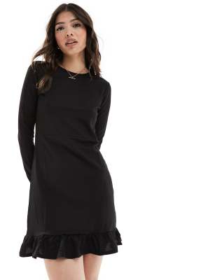 New Look frill detail long sleeve mini dress in black