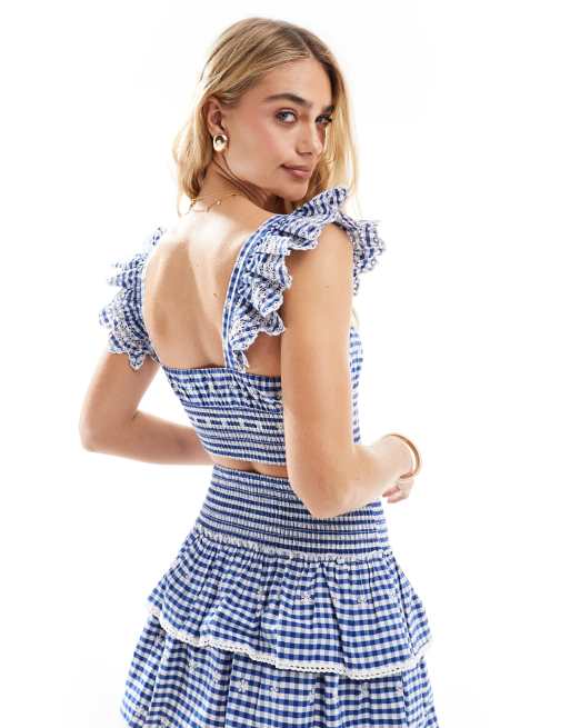 New Look gingham crop top in blue (part of a set)