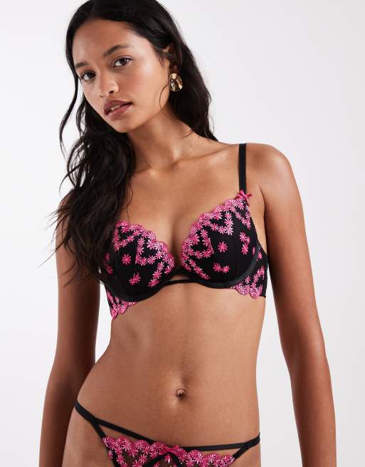 New Look heart embroidered push up bra in black