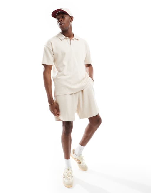 New Look heavyweight textured shorts in oatmeal (part of a set)