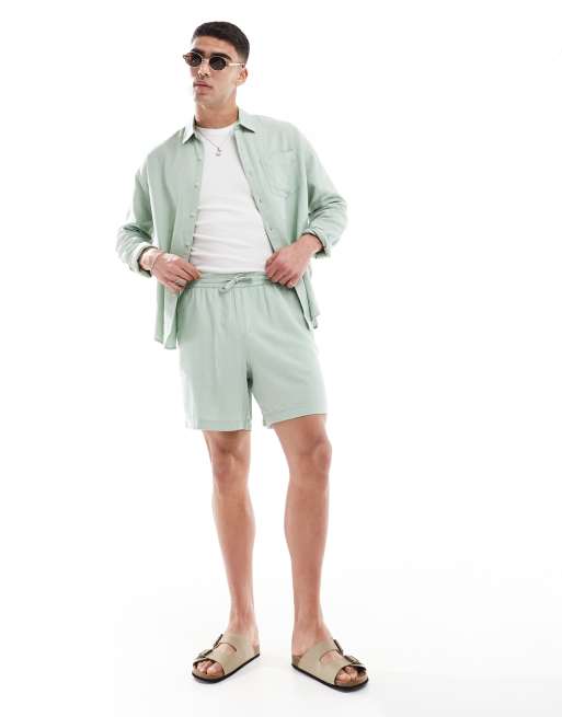 New Look linen blend pull on shorts in light green (part of a set)