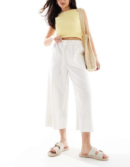 New Look linen cropped pants in white
