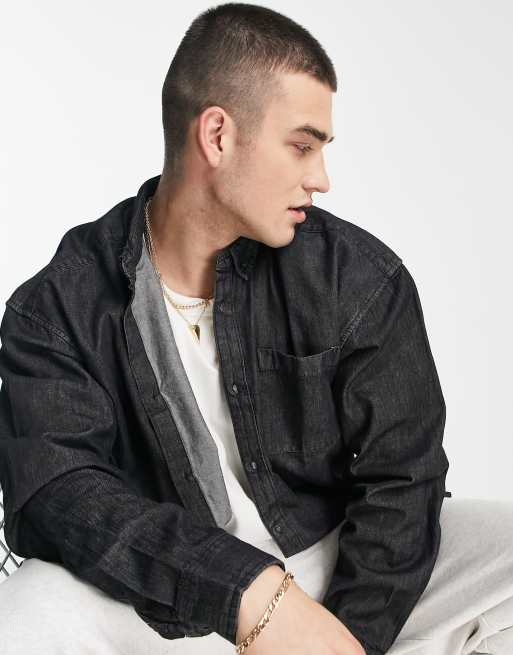 New Look long sleeve 90s oversized denim shirt in black