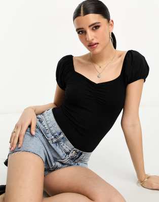 New Look poplin puff sleeve body in black