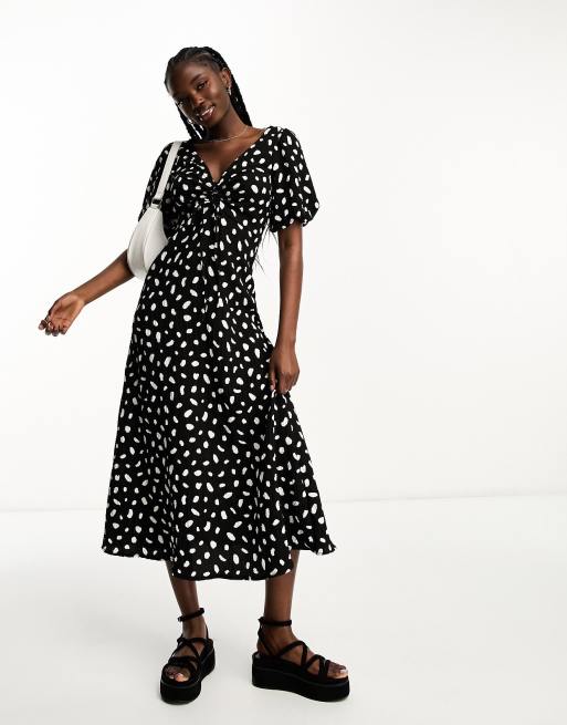 New Look puff sleeve midi dress in black smudge print