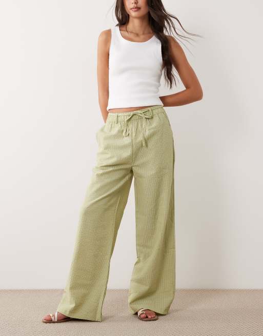 New Look seersucker stripe wide leg pants in green