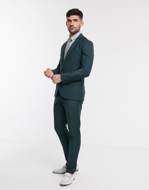 New Look skinny suit in dark green