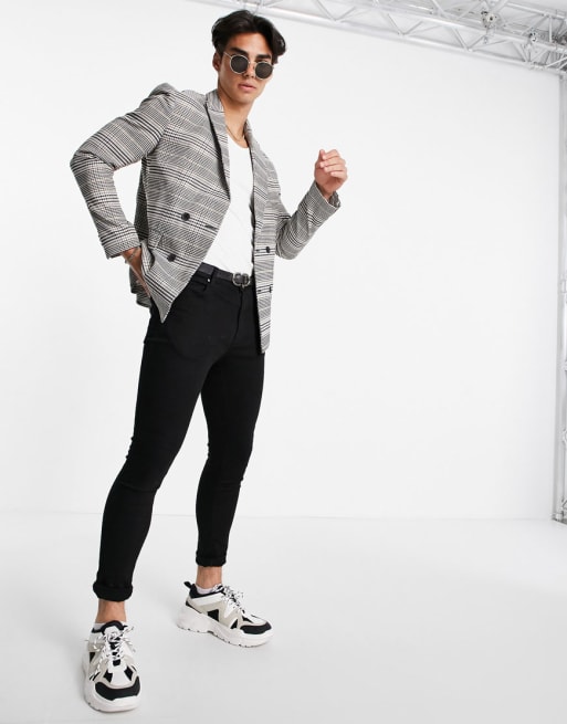 New Look slim double-breasted suit jacket and cropped pants in grey check