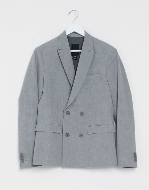 New Look slim double-breasted suit jacket cropped suit pants in grey
