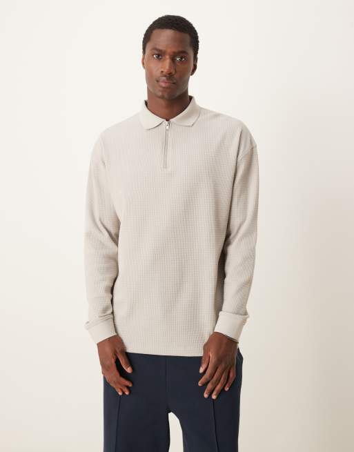 New Look textured long sleeve polo shirt in stone