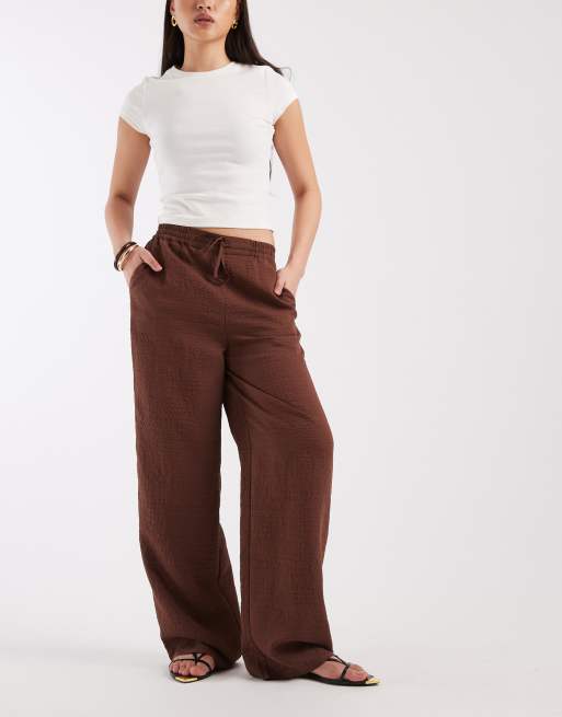 New Look textured stripe wide leg pants in brown