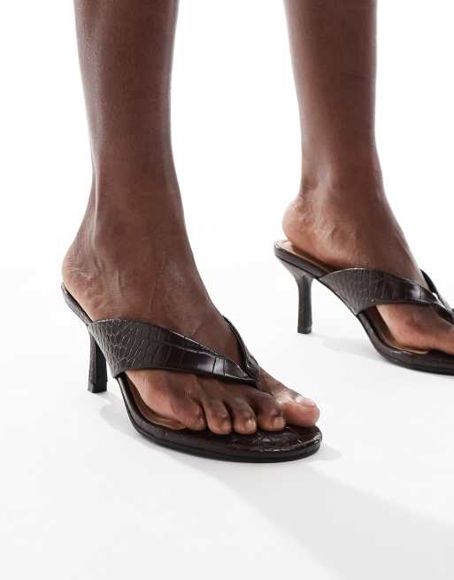 New Look toe post heeled sandals in dark brown