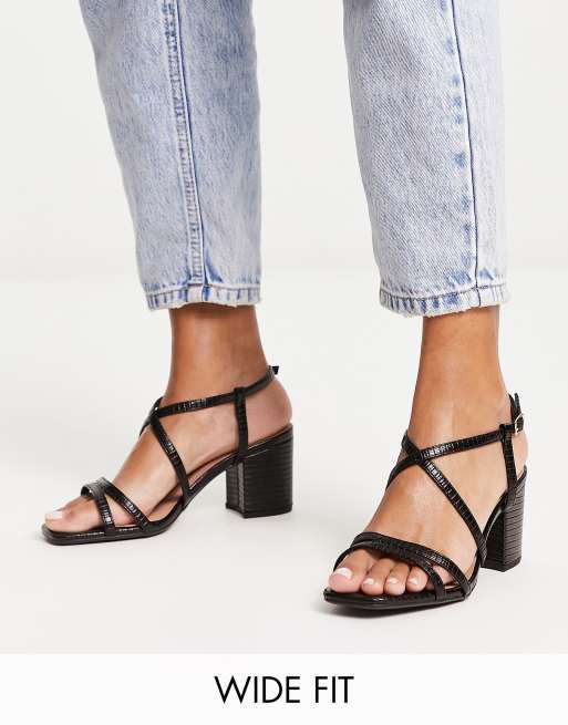 New Look Wide Fit strappy block heeled sandals in black