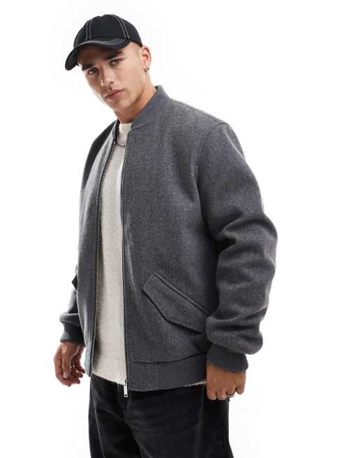 New Look wool look bomber jacket in grey