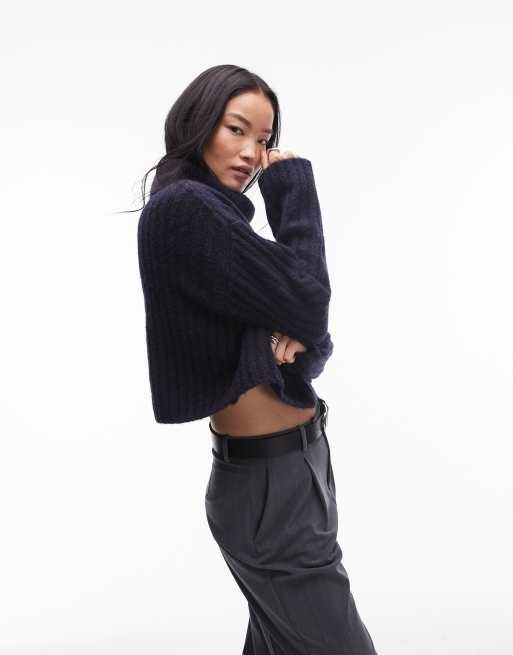 Nia Bruni roll-neck cable knit jumper in navy