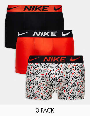 Nike Dri-FIT Essential Microfibre trunks 3 pack in white, orange and black print