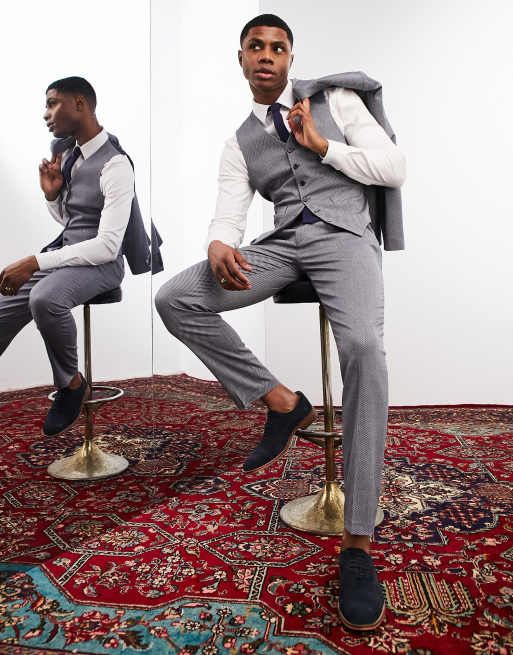 Noak slim premium fabric waistcoat in blue micro texture with stretch