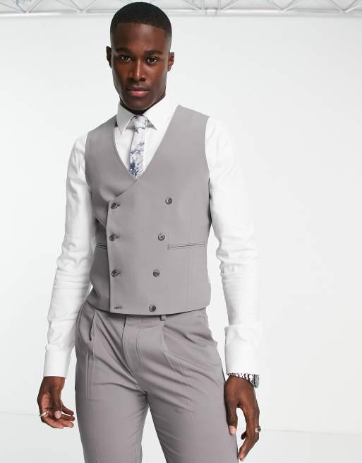 Noak 'Tower Hill' skinny suit waistcoat in grey worsted wool blend with stretch