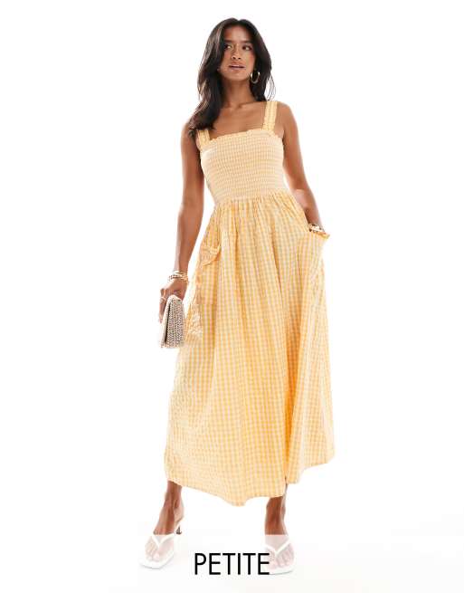 Nobody's Child Petite Donnie shirred midi dress in yellow gingham