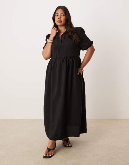 Nobody's Child Plus Hebe puff sleeve collared midi dress in black