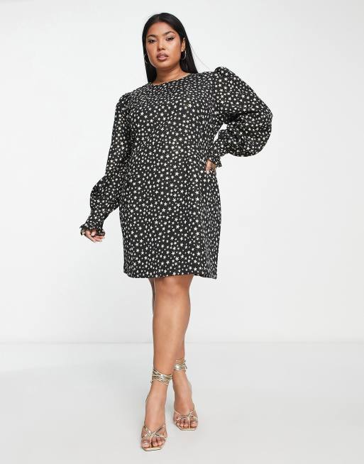 Nobody's Child Plus Peggy puff sleeve metallic star mini dress in black