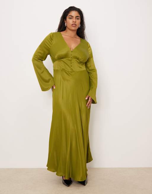 Nobody's Child Plus Stella long sleeve midi dress in olive
