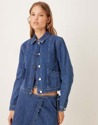 Nobody's Child scallop denim jacket in mid wash (part of a set)