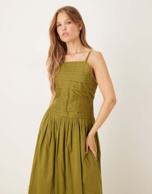 Nobody's Child Talia ruched drop waist midi dress in khaki