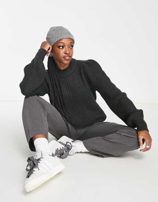 Noisy May high neck jumper in dark grey