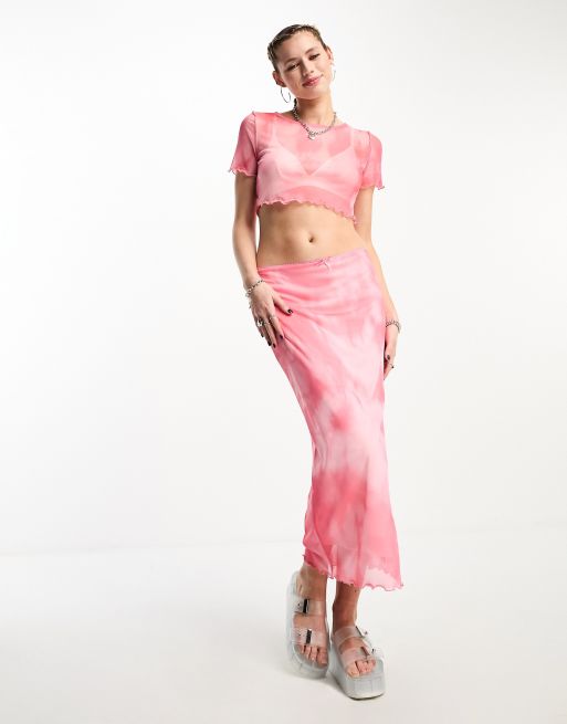Noisy May mesh maxi skirt in pink tie dye (part of a set)