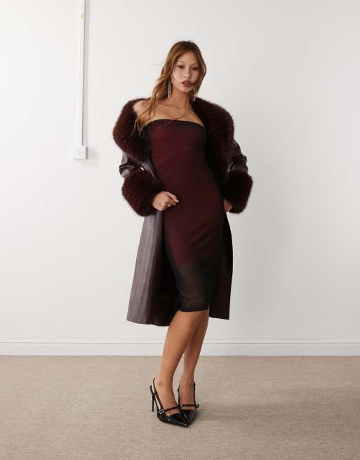 Noisy May mesh overlay midi bandeau dress in black & red