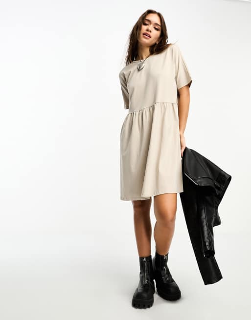 Noisy May smock t-shirt dress in stone