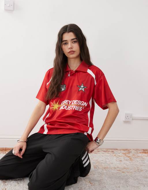 Obey short sleeve logo football polo jersey in red