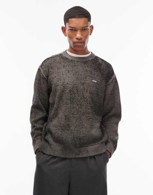 Obey spray effect knitted jumper in black