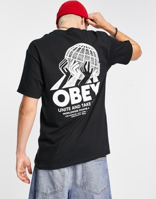 Obey unite back print t-shirt in black