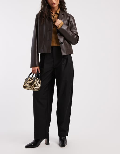 Object pleat front barrel leg detail pants in black