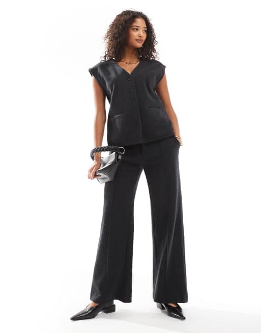 Object structured boxy waistcoat and seam detail pants set in medium grey