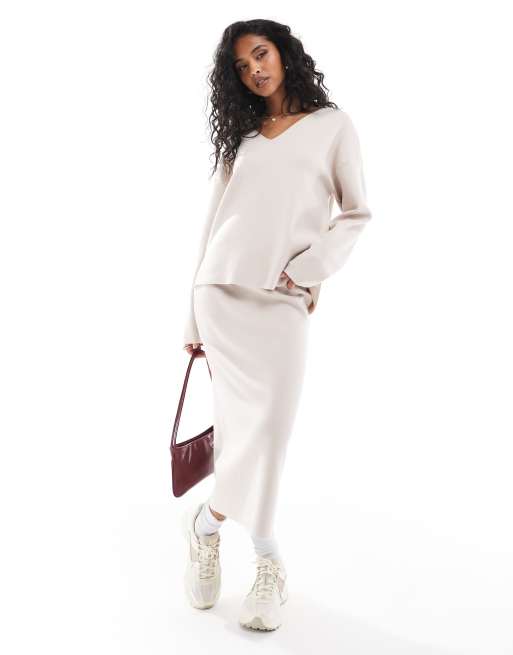 Object structured knit top and skirt set in silver grey