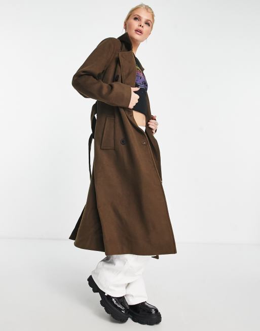 Object wool blend trench coat in brown