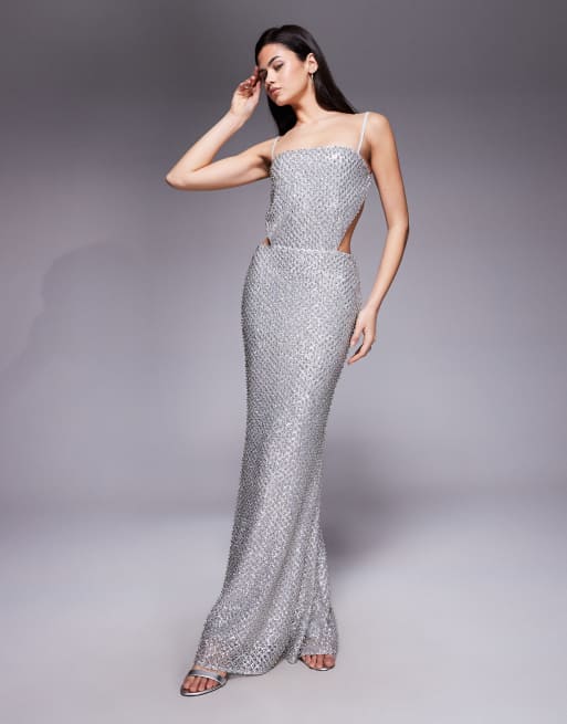 Oh Polly Katalia embellished cut out backless maxi dress in silver