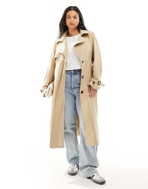 ONLY Curve longline trench coat in beige