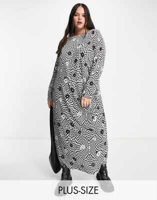 Only Curve maxi dress in black checkerboard floral