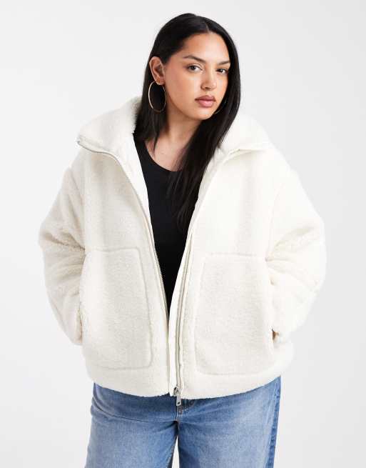 ONLY Curve teddy borg jacket in white