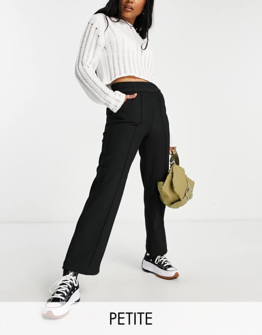 Only Petite stretch waist straight leg pants in black