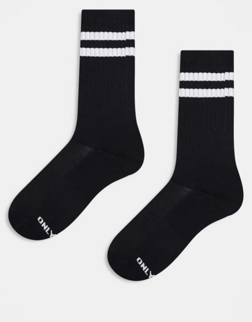 ONLY & SONS 2 pack socks in black with white stripe