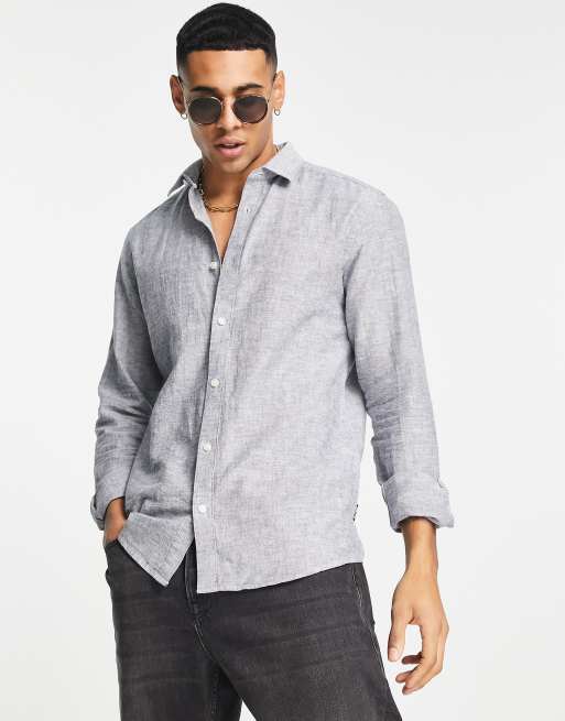ONLY & SONS linen mix long sleeve shirt in blue marl