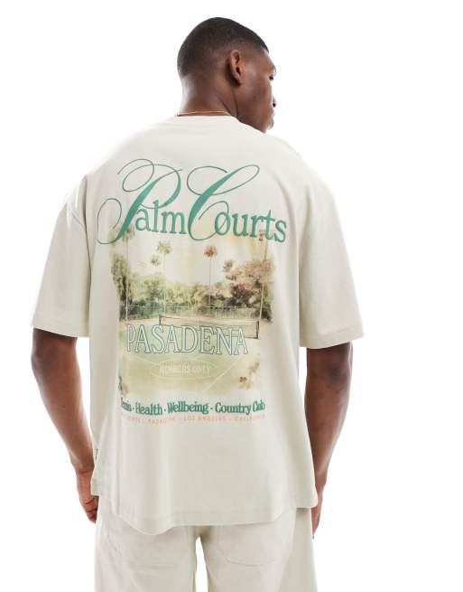 ONLY & SONS oversized t-shirt with courts back print in beige