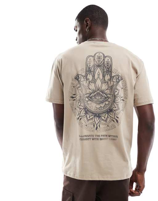 ONLY & SONS oversized t-shirt with hamsa hand back print in beige